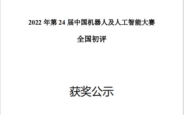 2022 年第 24 届中国机器人及人工智能大赛全国初评获奖公示
